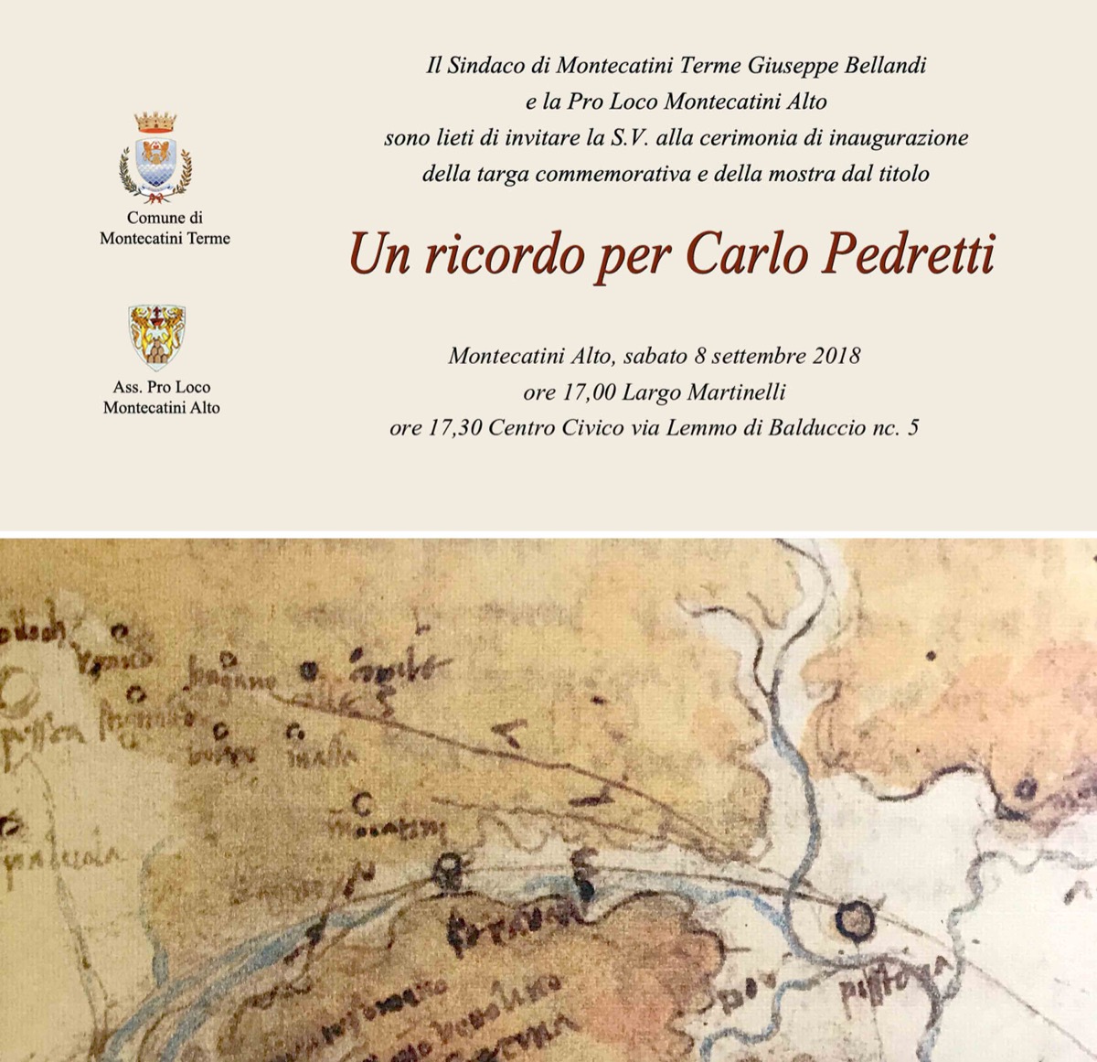 E` in ricordo di Carlo Pedretti (1928-2018) che questa mostra prende il suo avvio e si promette di ripercorrere e far rivivere una dimensione più intima dell’Autore per valorizzare la sua doppia vocazione di poeta e di artista.